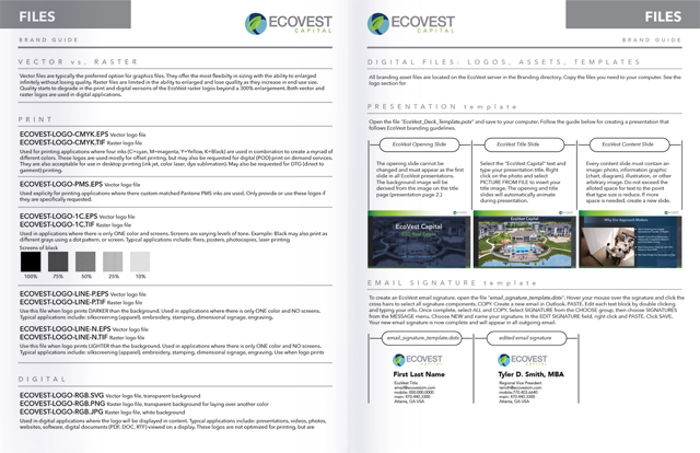 A digital style guide for rapid deployment, ensuring that all communication provides a cohesive brand representation. The multipage document designated and outlined usage for all brand components, including applications for each. The final document was deployed digitally for desktop printing, email, and internal website display.