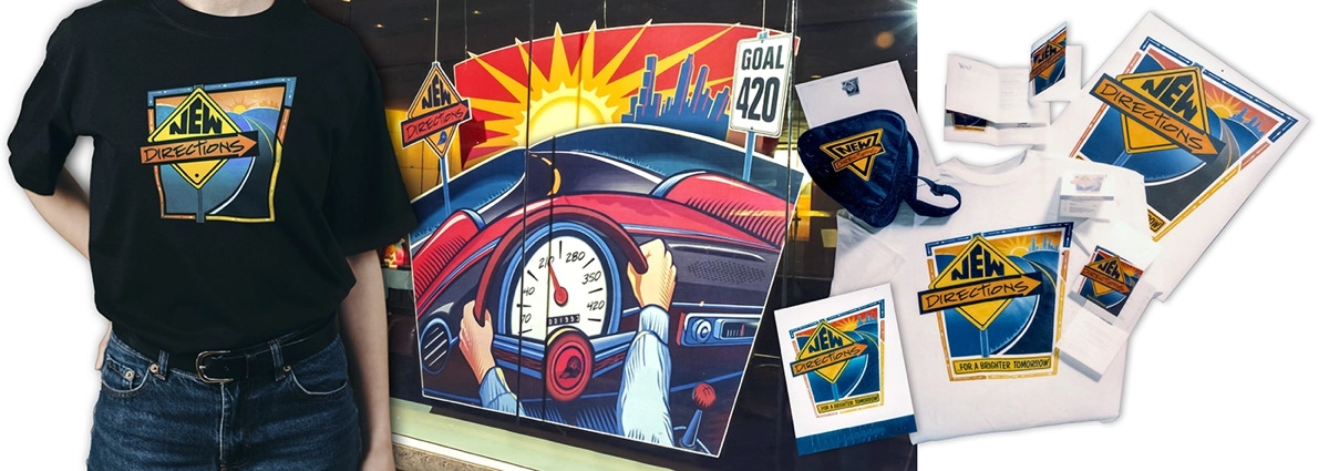 Develop a complete campaign branding package that inspires employees to engage, volunteer, and donate to the United Way. Design components around a road-trip theme to suggest a journey to a rewarding destination. Apparel, lobby funds raised tracking sign, collateral, merchandise.