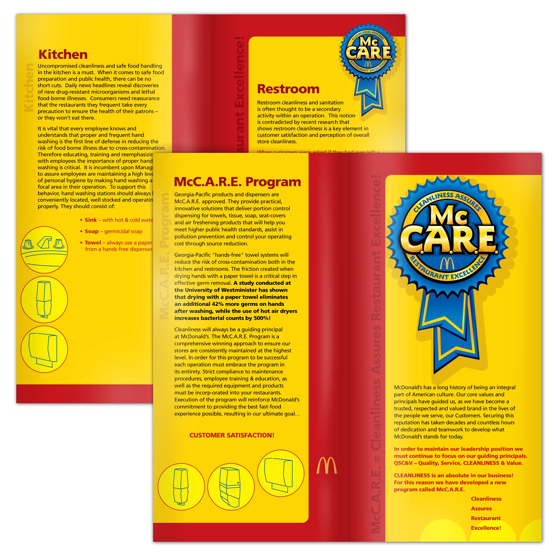 Develop corporate logo and component graphics in collaboration with the program originator to generate employee enthusiasm and patron confidence while conforming to strict corporate brand guidelines. Components include web page, logo design, brochures, pamphlets, guides, product sheets, posters, letterheads, decal, food tray sheet, and food packaging.